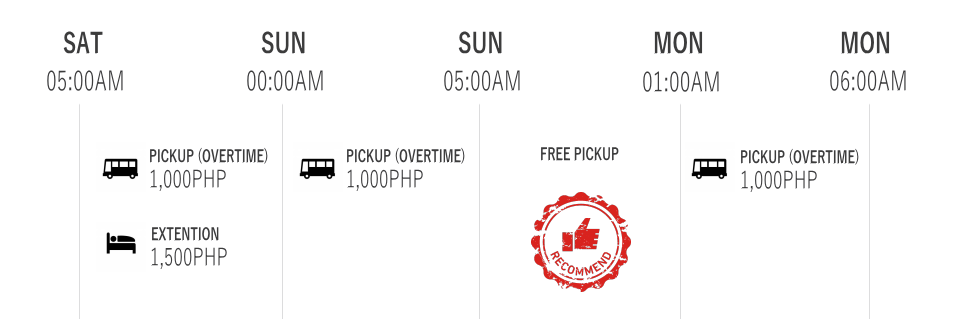 セブ空港への到着予定時刻が土曜日となるフライトをご利用の場合は前泊が必要です。